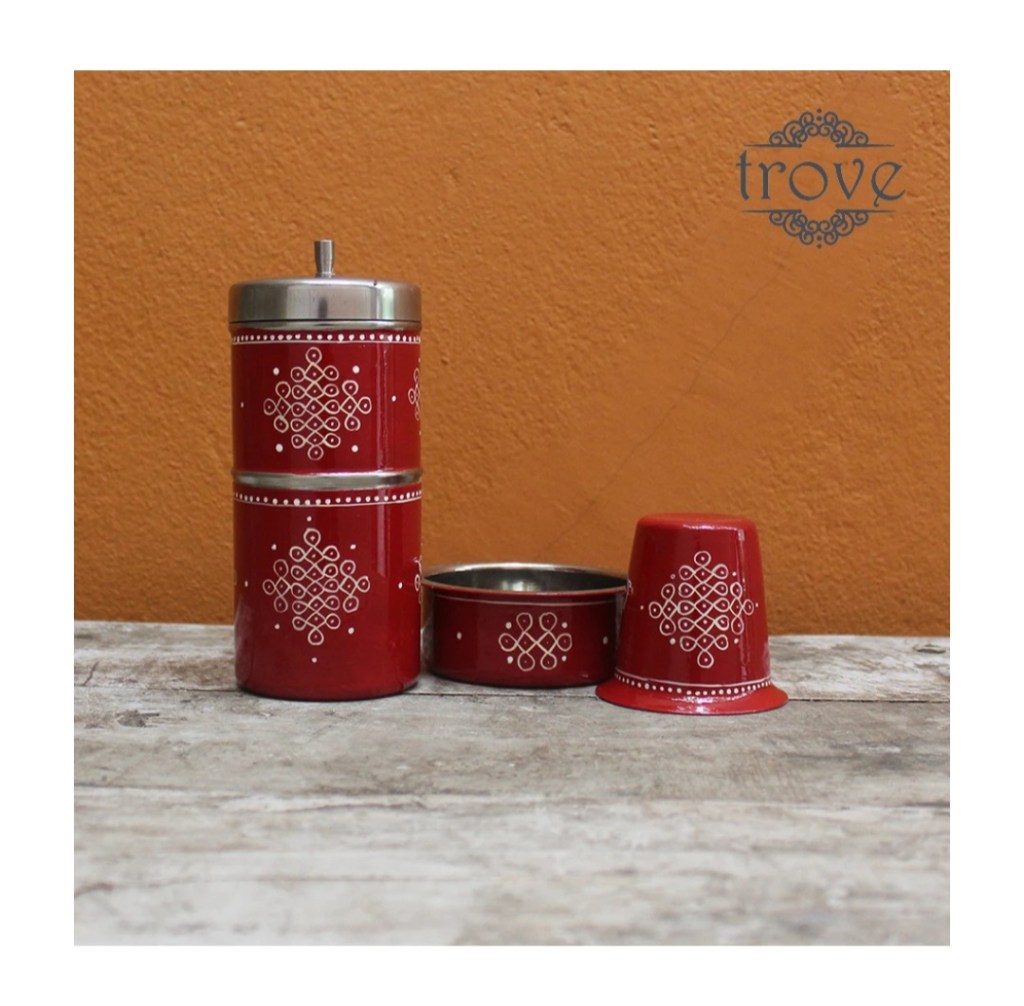 3. Red Kolam Coffee Filter Set by Trove Craft India